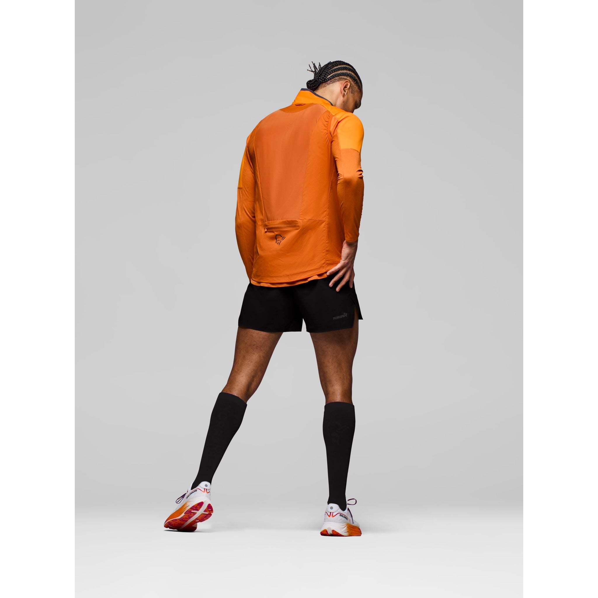 We use a arero90 fabric in the vest because it offers a great mix of wind resistance, breathability, packability and durability. We use an open mesh fabric in the back for breathability and fit.