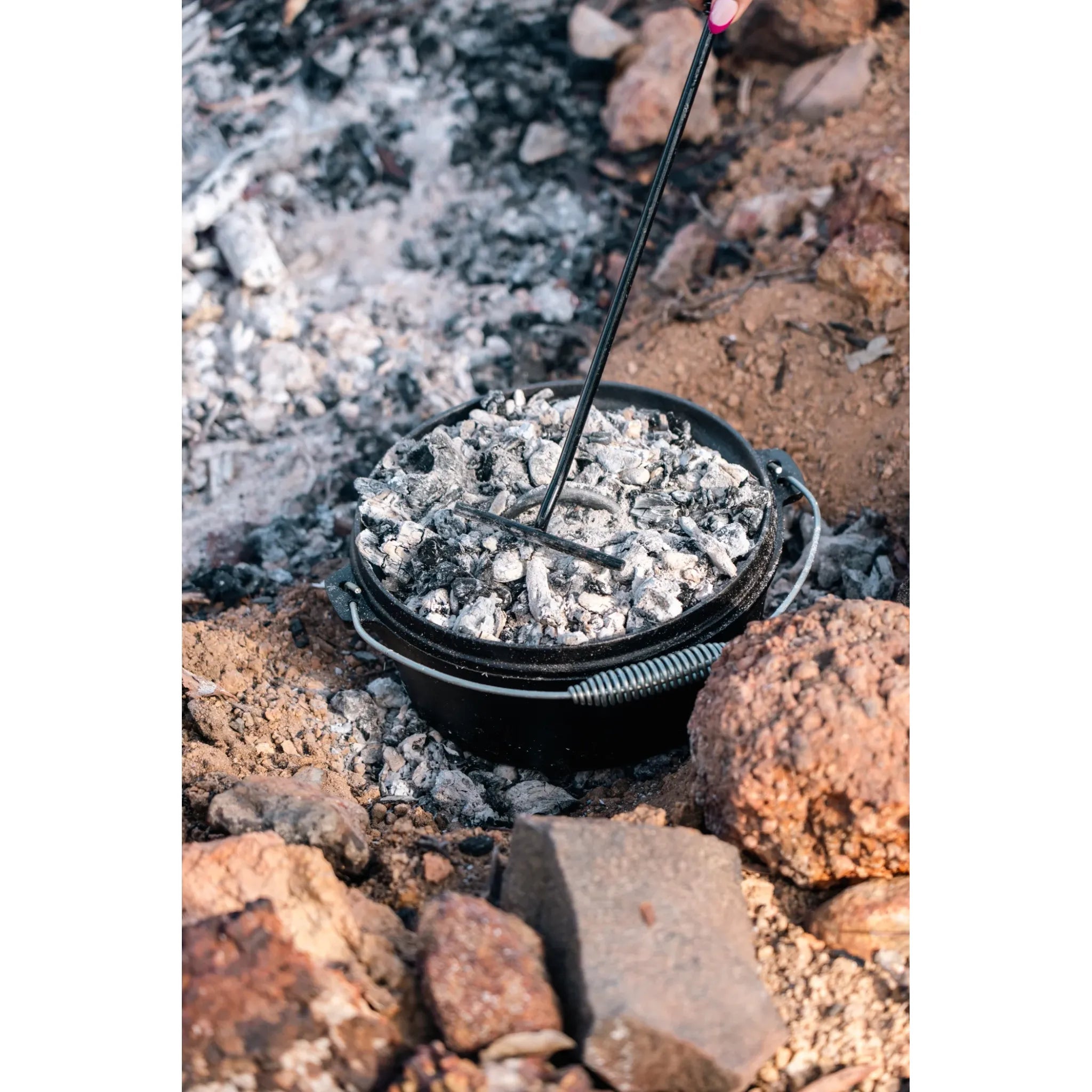 Its ergonomic design ensures a secure grip, while the 43 cm length keeps your hands at a safe distance from heat. A must-have accessory for outdoor cooking, it pairs perfectly with Wildtrak cast iron camp ovens for hassle-free and safe campfire meals.
