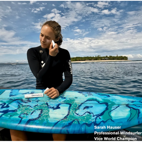 Dermatone SPF 50 Mineral Sunscreen comes in a “hands-free” twist-up stick that fits easily in your pocket or bag. Zinc oxide (non nano) provides broad spectrum sun protection, and the hydrating base of natural oils keeps your skin from drying out. The no-mess stick and fragrance free formula makes our Mineral Sunscreen perfect for outdoor athletes and enthusiasts who want to keep lotion off their hands or want natural, reef safe sun protection.